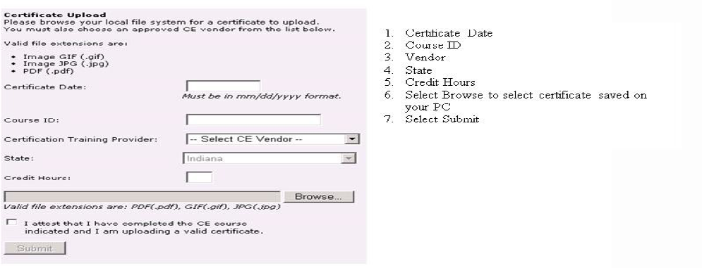 - Complete fields regarding course found on completion certificate