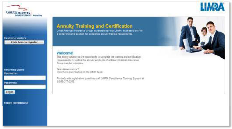 The National Association of Insurance Commissioners {NAIC} acts as a forum for the creation of model law and regulations. If your state has adopted the 2010 NAIC Suitability in Annuity Transactions Model, you will need to complete this. If you are a first time user, please select “Click  Here  to  register.”  Please note that  NAIC training cannot be completed in Firefox. If you have questions, please contact the Marketing & Sales desk at (888) 438-3398, x11999 .