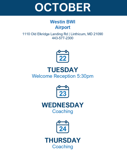 The dates for the event are Tuesday, Oct. 22nd – Thursday, Oct. 24th, at the Westin Baltimore Washington Airport Hotel